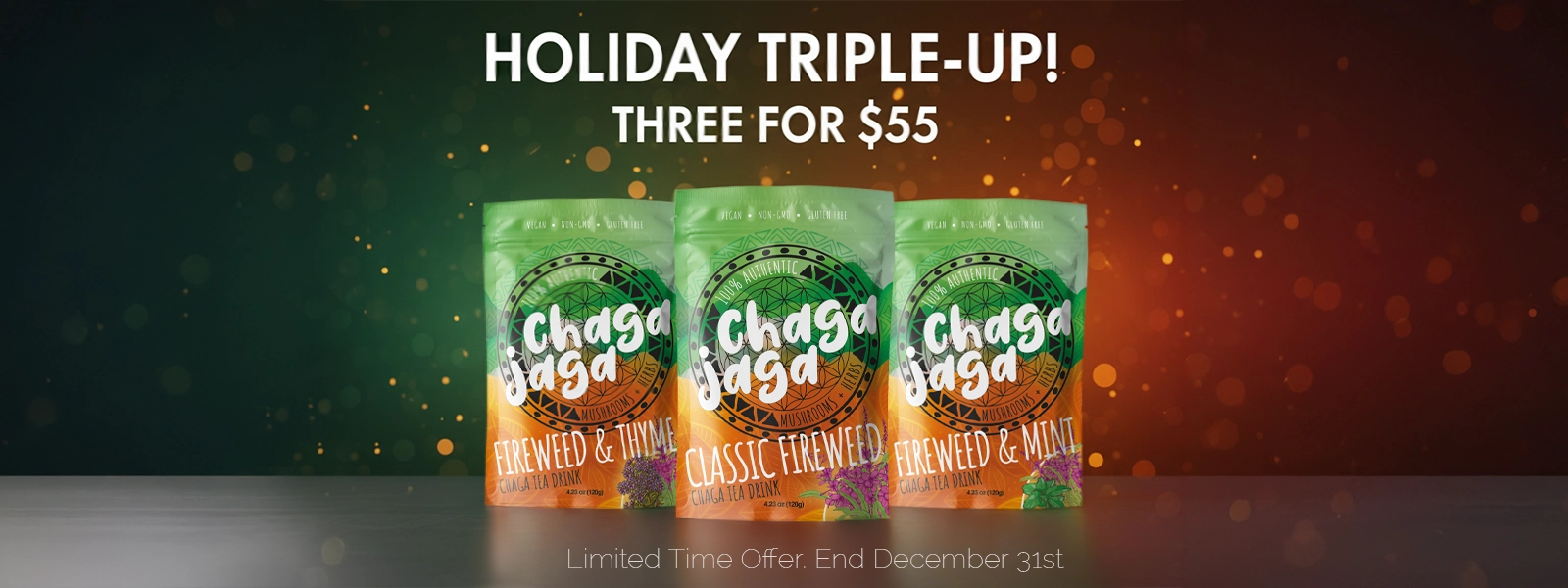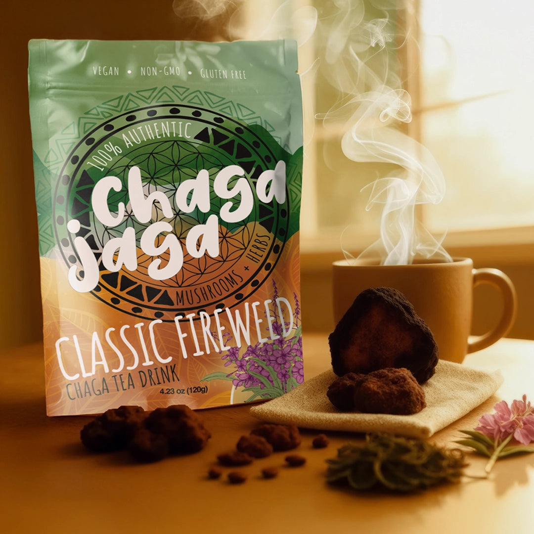 Forget the coffee crash. We blend the King of Mushrooms (Chaga) with the ancient Fireweed herb to create a powerful restorative tonic. It supports your gut health, boosts immunity, and provides steady focus without the caffeine spikes. It’s not just tea—it’s survival wisdom from the Taiga.